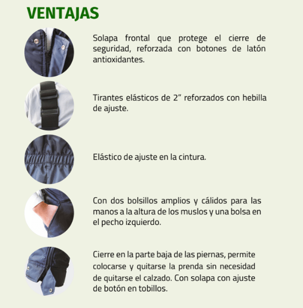 • Único pantalón con peto de 4 capas, con cámara de aire interior que